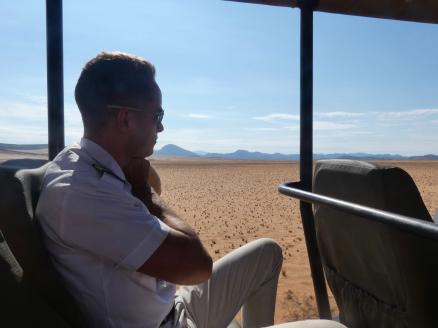 Oh danke. Der Job fasziniert durch die Abwechslung. Neben den netten Kontakten, hat die Flugsafari andere positive Aspekte für mich. Ich lege in Namibia lange Strecken zurück. Es gibt anspruchsvolle Airstrips. Die Luftbedingungen wechseln. Ihr habt es erlebt: schnell aufziehender Nebel in Swakopmund, im Sommer die Hitze.