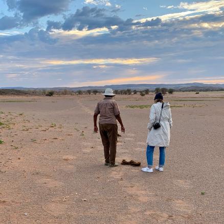 Der morgendliche Himmel schimmert Tintenblau. Die Sterne verblassen. Um sieben Uhr machen wir uns mit Rosie auf in die Welt der Wüstenelefanten. Eine besondere Frau wird für uns die Spuren lesen. „Ich bestand als erste namibische Frau mit dunkler Haut diese Prüfung“, erzählt die Damarageborene. Stolz darüber zeigt sich noch heute auf ihrem frohen, aufgeschlossenen Gesicht. Sie gehört zur ersten Generation von Locals, die aktiv für die Arbeit im Tourismus geworben und professionell ausgebildet wurden.