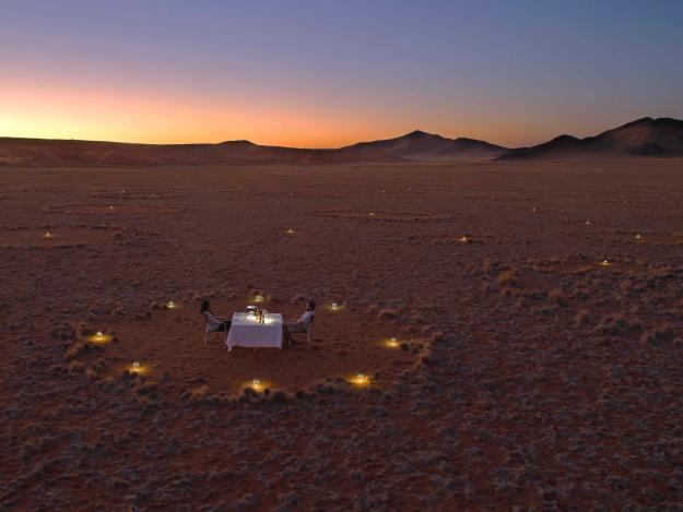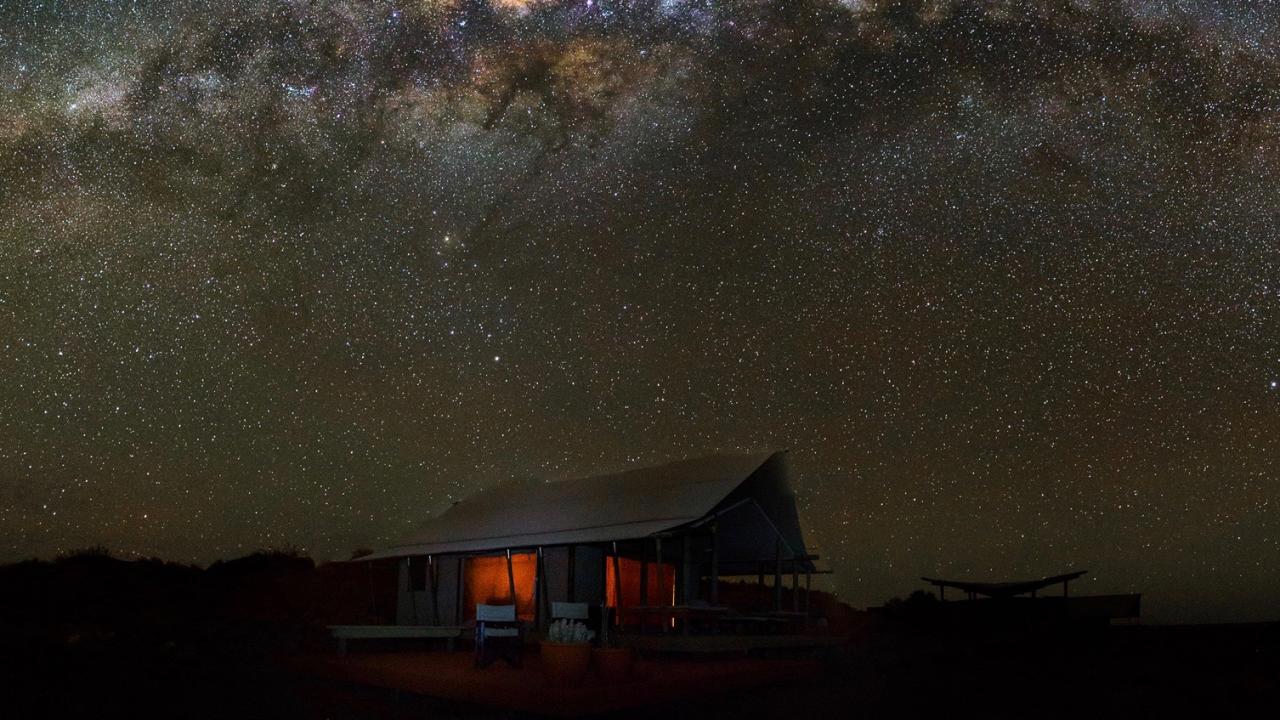 Vom fruchtbar gemachten Boden wandert der Blick immer wieder über den Kamm der rotglühenden Dünen zum Himmel. Hier wie im übrigen Namibia ist der Sonnenuntergang spektakulär. Und dann? Entfaltet sich das Sternenmeer am Himmel. Milchstraße, Perseiden, Venus, der gute alte Mond … Vor der natürlichen Dunkelheit dieses Himmels rauben die Himmelskörper uns den Atem. Die Guides von Wolwedans erklären das immerwährende Licht. Bald breitet sich ehrfürchtige Stille aus. Man findet Frieden.