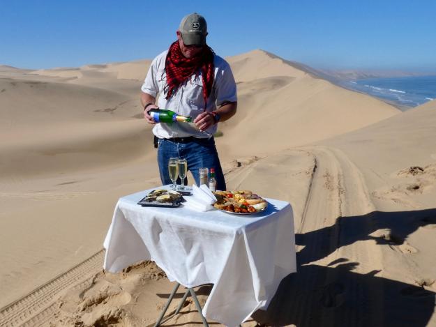 Ein windiges aber ebenso beeindruckendes Picknick lässt sich nördlich von Möwe Bay im Skeleton Coast Nationalpark erleben