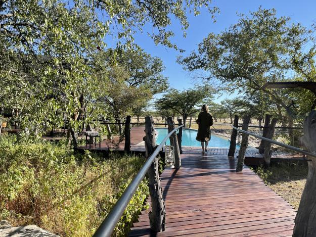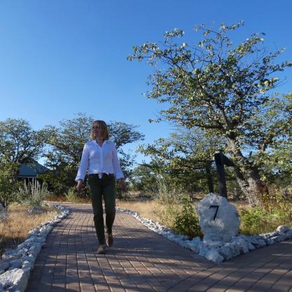 Lisa, unsere Gastgeberin, stimmt zu. „Open Space“ nennt sie den gestalterischen Leitgedanken. Die Lodge fügt sich perfekt ein in die Landschaft von Etosha. Eröffnet wurde im März 2020 und dann musste man direkt wieder schließen. Das Team hat sein Engagement bewahrt.