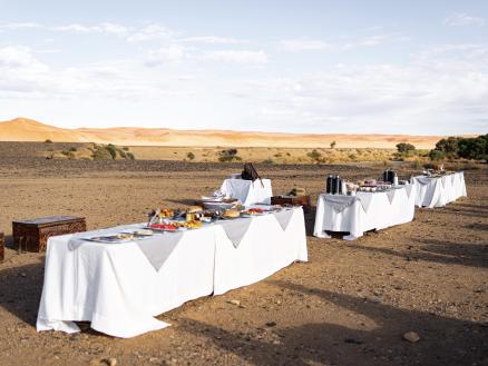 Nach der Landung erwartet Sie ein exquisites Champagnerfrühstück mitten in der Wüste, das den Abschluss dieses besonderen Abenteuers bildet.