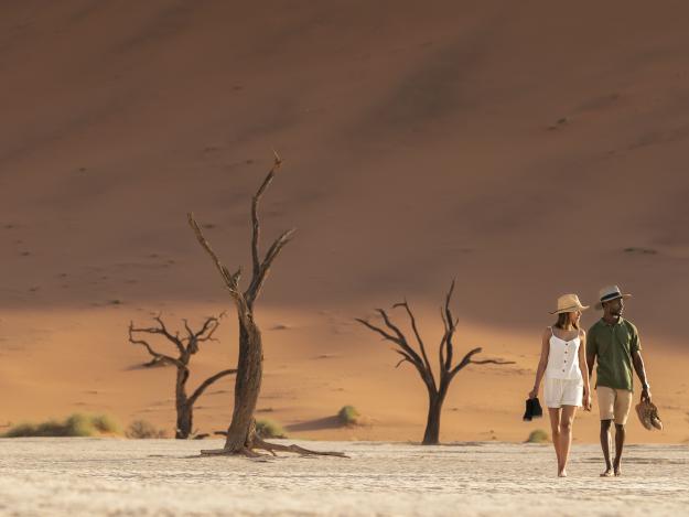 Tourismus erfüllt in Namibia eine Mission: zusammenhängende Ökosysteme zu bewahren. Auf Wolwedans begann man damit im Jahr 1995. Inzwischen entstanden vier Lodges und Camps, die der Natur dienen, sich optisch wundervoll einfügen und den Besuchenden ein Geschenk machen: sich mit der Umgebung zu verbinden. Das klingt vielleicht etwas esoterisch. Drücken wir es anders aus. Man kann hier wundervoll abschalten.