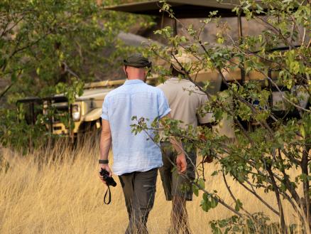 Mit dem Guide entdeckt man die Tierwelt des privaten Reservates – zu Fuß oder mit dem Landrover. Das Licht taucht die Umgebung in ein Farbenspiel, das sich ständig wandelt. Die Augen können kaum genug bekommen, während der Guide wissenswerte Informationen zu Flora und Fauna vermittelt.