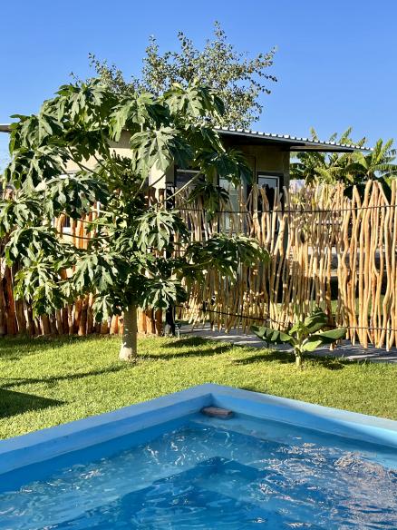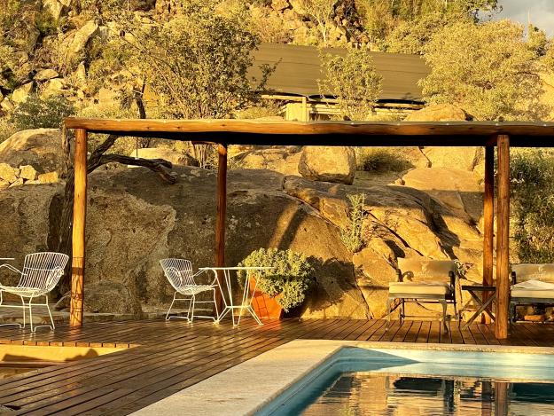 Die Zimmer sind schlicht und schön eingerichtet. Der Fokus liegt auf Exkursionen und Geselligkeit. Während der “Potjie”, ein Eintopf, im gusseisernen Tiegel köchelt und duftet, stoßen die Gäste abends mit einem kühlen Bier oder Weißwein an. Gekocht wird mit frischen Zutaten, die überwiegend aus dem eigenen Garten des Guesthouses stammen. Im Hintergrund schimmert der Pool blau in der Nacht. Ein erlebnisreicher Tag geht zu Ende. Der Besuch bei den traditionell lebenden Himbas bleibt sicher in Erinnerung. Ebenso eine Safari, die Rhinos oder Wüstenelefanten nachspürt. Unser Tipp: Man kann den Drive direkt mit einem Sleep-Out im trockenen Bett des Hoanib River verbinden.