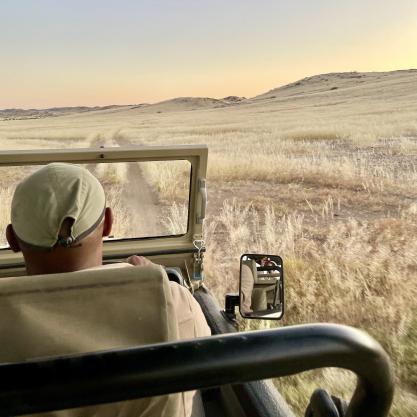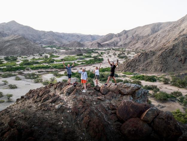 Morgens bricht man auf und durchquert eine Landschaft, die an Science-Fiction-Verfilmungen erinnert. Unwirklich, schön und unvergesslich. Strauße, Zebras, Gnus und Springböcke ziehen in der Weite lautlos vorbei. Zurück in Sesfontein beglückt das Dorfleben. Jetzt heißt es tanken und weiter. Das nächste Abenteuer wartet schon in Namibia.