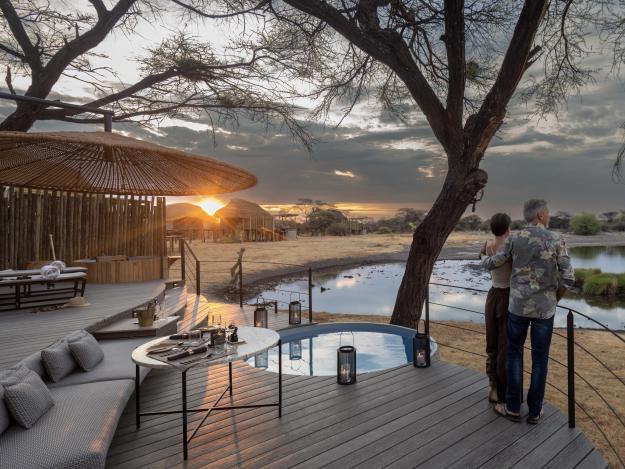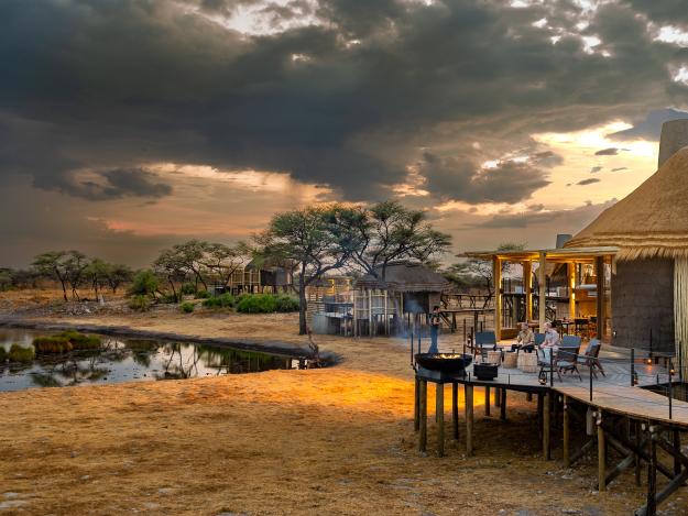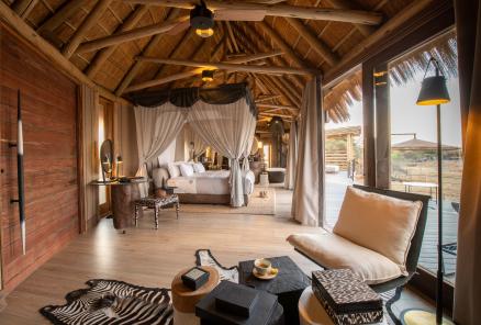 Apropos Foto: “Bildschön” fügt sich Ihr Camp in die einzigartige Umgebung ein. Eleganz trifft Natur! Dieses Konzept kombiniert traditionelle Bauweise mit modernem Design. Baden, schlafen, ankleiden: Die Bereiche gehen fließend ineinander über. Das feine Farbenspiel des Interieurs spiegelt die natürlichen Töne der Umgebung. Man betritt die private Terrasse, erblickt das Wasserloch und versinkt in ruhiger Beobachtung.