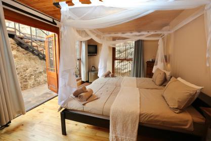 Über die historische Wendeltreppe gelangen Sie auf die Empore und zu Ihrem individuell gestalteten Zimmer. Besonders das große Bad gefällt uns gut. Entspannen Sie direkt auf Ihrer Terrasse oder genießen Sie die Gartenanlage samt Bad im Pool. Erfrischt starten Sie mit Ihrem Guide in das Land Ihrer Träume.