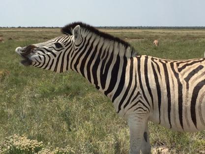 Unterwegs beeindruckt die Savanne. Soweit das Auge reicht, bilden Büsche und Mopane Bäume einen grünen Teppich auf trockenem Grund. Südwestlich der Etosha-Pfanne zeigen sich bereits kleine Salzflecken. Wie bilden sie sich? Und was gedeiht hier? Warum sind die Tiere ganz verrückt nach Salz? Ihr Guide weiß es!