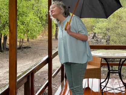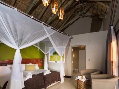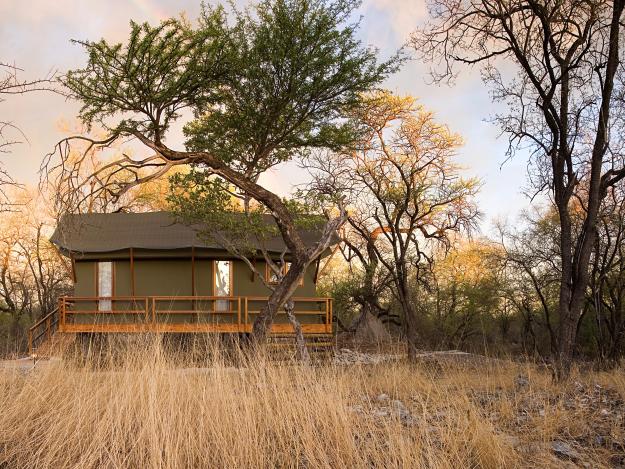 Ihr Chalet passt stilistisch perfekt zur Umgebung. Canvas in Kombination mit Holz harmonieren mit Mobiliar im Stil der 1920er-Jahre. Die Außendusche darf natürlich nicht fehlen! Erfrischt spaziert man zu einer Art Tribüne mit Blick auf das Wasserloch. Hier beobachten Sie sicher und geschützt die Tiere der Umgebung.