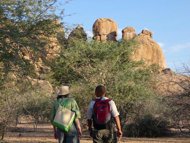 Vor rund 2000 Jahren wurde er hier auf der Felswand verewigt und scheint zu schweben. Das Licht der untergehenden Sonne belebt die filigranen Malereien und unterstreichen die Poesie der bizarren Felslandschaft. Per Walking-Safari gelangen Sie zu den Felsmalereien. Unterwegs erklärt der Guide, warum die Felsen hier aussehen wie überdimensionale Murmeln und welche Pflanzen heilende Wirkung haben.