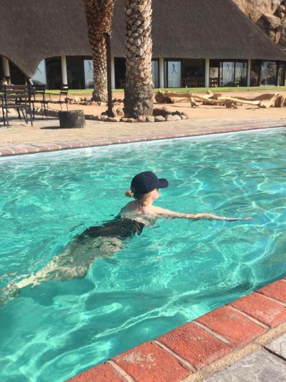 Ihr Guide steuert das Uis Guesthouse an, gelegen in einer sympathischen Siedlung, die für Minenarbeiter gegründet wurde. In dieser Region wird Zinn abgebaut. Sie leben „mitten in der Stadt“. Architektur und Interieur des Guesthouse zitieren einfühlsam die Umgebung von Uis. In Handarbeit gefertigte Steine aus der ortsansässigen Ziegelei formen das attraktive Mauerwerk. Empfang, Speiseraum, Terrasse mit Lounge sowie die Appartements bilden ein Karree rund um den leuchtend türkisfarbigen Pool und die saftig grüne Wiese. Ihr großzügiges Zimmer mit Sitzecke und angeschlossenem Bad zeigt stylischen Industrie-Charme – sehr gelungen!