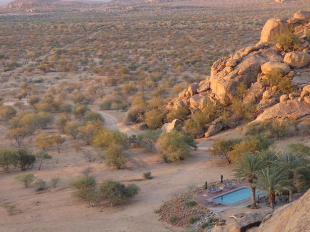 Sanft führt Ihre Privatrundreise durch Namibia Sie höher und höher: Sie erreichen die Safarihoek Lodge. Hügel aus Dolomit-Gestein sind typisch für die Gegend zwischen Windhoek und dem Etosha Nationalpark. Ihr Ziel ist auf solch einer Anhöhe angesiedelt.