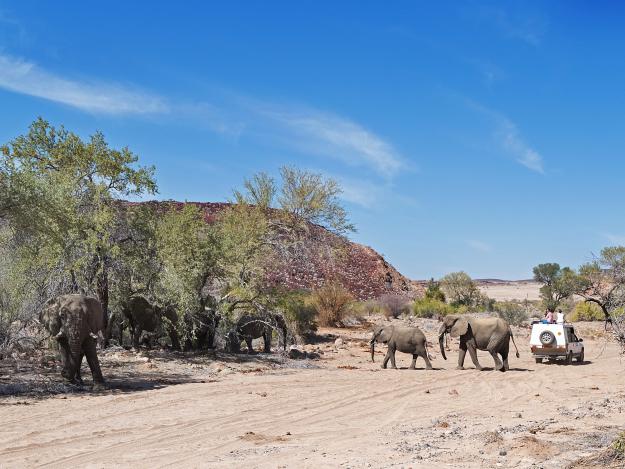 Namibia ist groß und mit der Privatreise durch dieses Land werden Sie einige Kilometer im Wagen zurücklegen. Wie gut, dass jetzt ein paar Aktivitäten angesagt sind. Wer mag, besucht die White Lady. Sie gehört zu den Felszeichnungen, die 1918 in der Tsisab-Schlucht entdeckt wurde. Aktivurlauber unternehmen eine Tour mit dem Mountainbike. Und Naturfreunde begeben sich auf Safari und wollen den Wüstenelefanten begegnen. In dieser Gegend haben sie gute Chancen!