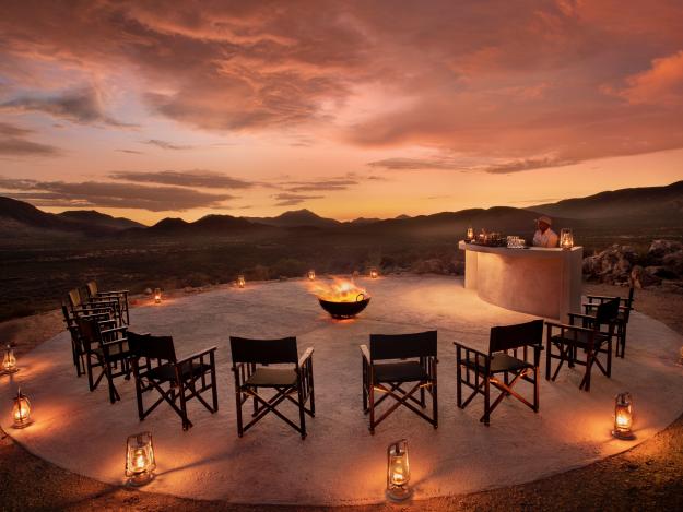 Nachmittags steuern Sie mit Ihrem Fahrer das Sleep-out an. Ihre Gastgeber haben die komfortablen Zelte bereits an einem windgeschützten, lauschigen Platz aufgeschlagen. Auf dem offenen Feuer köcheln namibische Spezialitäten und machen Appetit. Der Sonnenuntergang taucht das Brandbergmassiv in feuriges Licht – eine von tausend Inszenierungen des Gebirges. Unvergessliche, gemütliche Stunden liegen vor Ihnen. Auch für die abendliche Toilette ist alles gerichtet. So geht Ladies Safari!